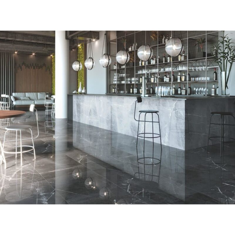 Gresie Pulpis tip marmura, 60×60 cm, finisaj lucios, culoare gri inchis