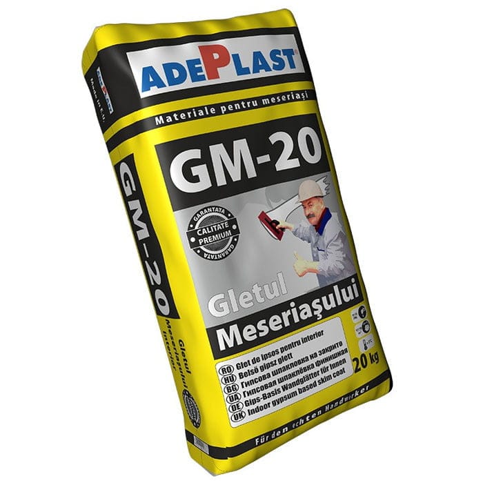 Gletul Meseriasului GM 20 de la Adeplast este un material de finisaj pentru suprafete maturizate, fara umiditate, la interior, pe beton, beton usor, tencuieli de ciment, tencuieli de var ciment, placi de gips carton, pentru obtinerea suprafetelor fine prealabil zugravelii. Cu ajutorul acestui glet obtineti suprafete super netede, intrucat este permeabil la vapori de apa, are culoare stabila, alba si prezinta rezistenta la raze ultraviolete.