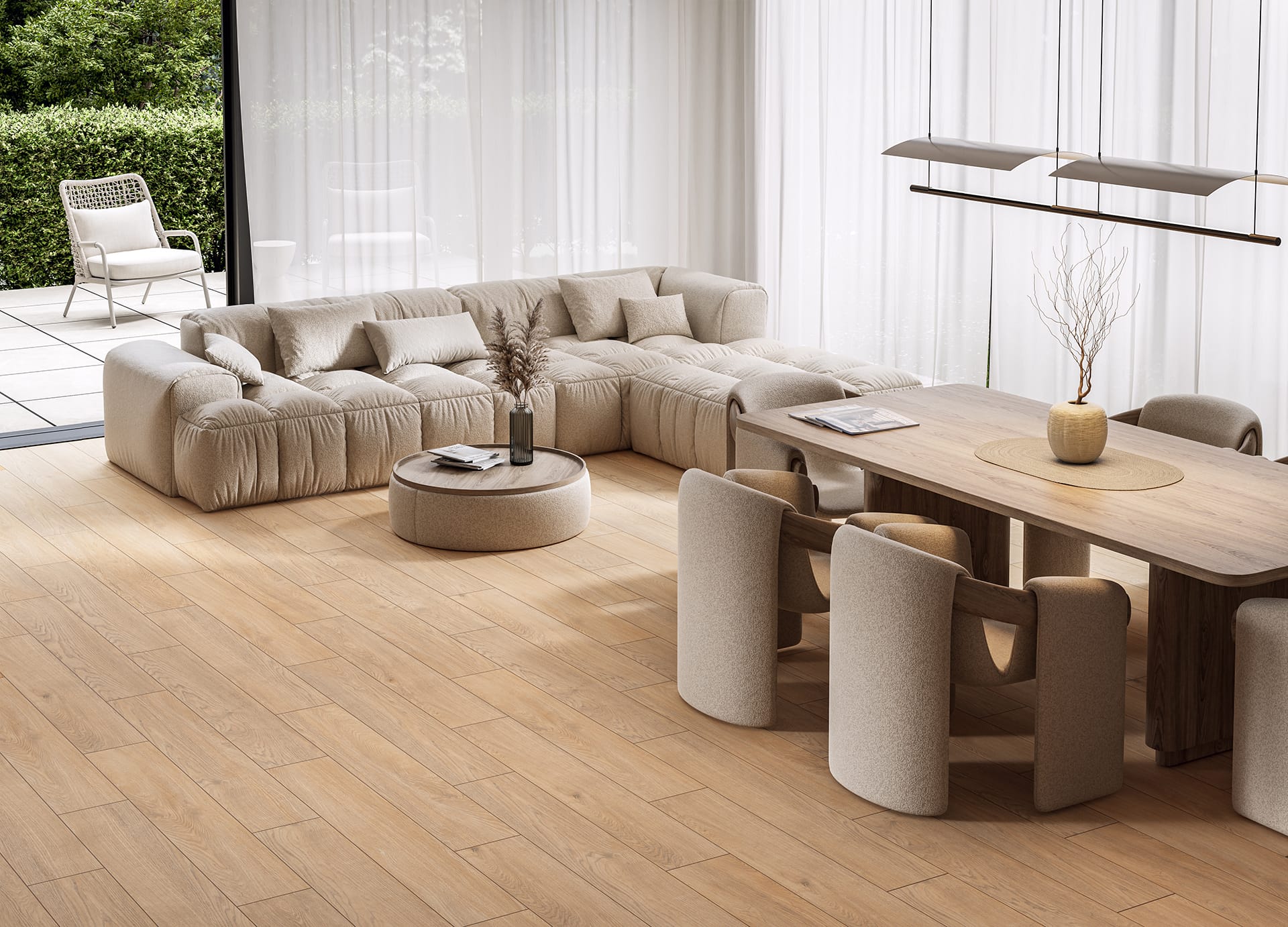 Gresie rectificata Neosimple Light 119.7×59.7 cm, model lemn, finisaj mat, bej
